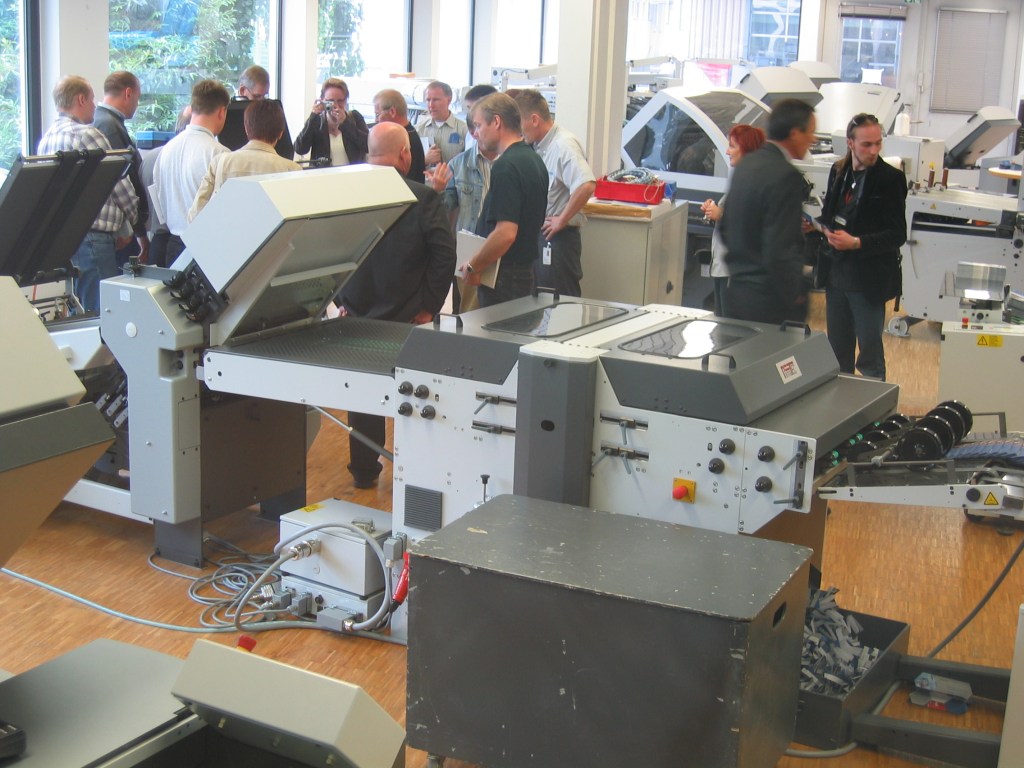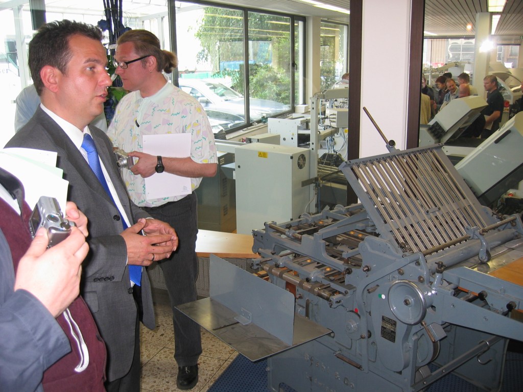Tiistaina 6.6.2006 menimme Ludwigsburgiin Heidelbergin Potspress osastolle. Isäntänämme toimi Head of Print Media Relations Detlev Dierkes ja Senior Product Specialist Folding Machines Gerald Manhart. Sthalin tehtaat on perustettu vuonna 1939 herra Sthalin toimesta. Heidelberg osti Sthalin taittokonetehtaan vuonna 1997, mutta säilytti Heidelberg Sthalfolder nimen konemalleissa. Ludwigsburgin tehtailla valmistetaan T- mallin (taskutaitto) ja K- mallin (tasku- ja veitsitaitto) taittolaitteita. Opettajat jaettiin kahteen ryhmään ja lähtivät tehdaskierrokselle, jossa he esittivät paljon kysymyksiä taittokoneiden toiminnasta ja rakenteesta. Taittokoneiden näyttelytilassa Frank Grüneberg ja Christina Nelde esittelivät Sthalfolderin mallistoa, mahdollisuuksia taittaa ja ominaisuuksia. Taittokoneiden imuhihna esiteltiin jo Drupassa vuonna 2004.