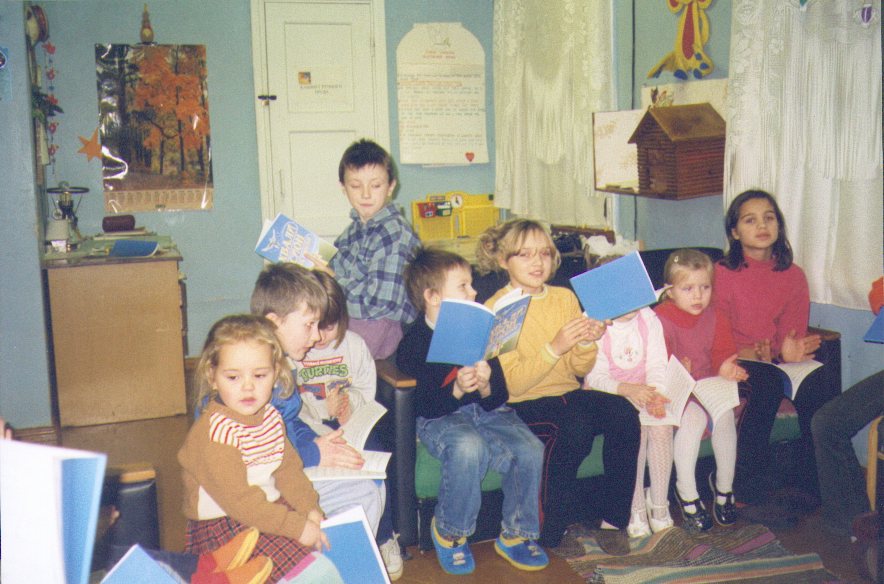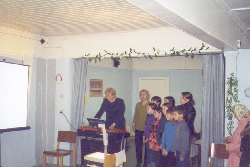 Tämän jälkeen siirryimme Galinan johtamaan kerhotaloon, joka toimii entisessä Jaakkiman kristillisessä opistossa, jossa meitä odotti lasten konsertti musiikkikerhotiloissa. Me saimme nähdä palettiesityksen myös. Galina kertoi, kuinka hänestä oli tullut kristitty kuukausi sitten. Hän kertoi myös, kuinka hänen poikansa Andrei oli tullut jo vuosia sitten uskoon, ja hän oli jo ollut hylkäämässä poikansa pahatapaisuutensa takia. Poika oli muuttunut uskoontulonsa jälkeen paljon ja on paikallisen helluntaiseurakunnan työntekijä. Andrein päätyö on äitinsä johtamassa kerhotiloissa päihdetyötekijänä.