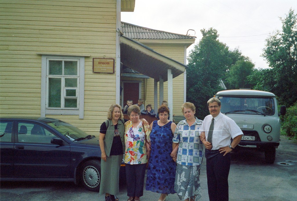 Järvenpään Arkin (vapaaseurakunta) ryhmän (Anneli, Leila Niskanen ja Hanna Roos) vierailu Venäjän Lahdenpohjaan 16-18.4.2004 onnistui hyvin. Aamulla lajittelimme vaateavustuksen vierailupaikkoihin. Varhain lauantaina vierailimme johtaja Veera Alexandrovan vammaistenlasten orpokodissa, jossa sillä hetkellä on 26 lasta, sillä yksi lapsi oli otettu ottolapseksi. Kaikki lapset ovat orpoja ja ovat siellä 8 vuoden ikäisiksi saakka. Tämän jälkeen he menevät lastenkoti-internaattiin tai invalidikoteihin. Orpolapsikoti toimii Suomalaisten rakentamassa Kansakoulussa vuodelta 1930. Iso osa lapsista ei osaa puhua, vaikka heitä opetetaan puhumaan. He ovat käyttäneet amerikkalaista kuntoutusohjelmaa lasten kuntoutuksessa. Henkilökuntaa on 40 ja lapset voivat hyvin johtajan kertoman mukaan, mikä näytti pitävän täysin paikkaansa. Johtaja sanoi, että heillä on erityisesti seuraavia tarpeita: bensiinikäyttöinen ruohonleikkuri, pesuaineista pulaa, hammasharjoista ja isopalasista puisista palapeleistä jne. 16 ikäinen Hanna sopi johtajan kanssa kummilapsen ottamisesta lastenkodin lapsesta. Vierailimme Meerin työnantajan juutalaisen liikemiehen Mark Koganin kartanokonttorissa (entinen Taskisen kartano), jossa tervehdimme hänen vaimoaan.
